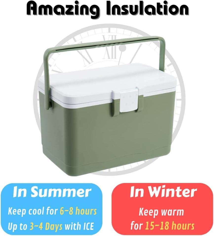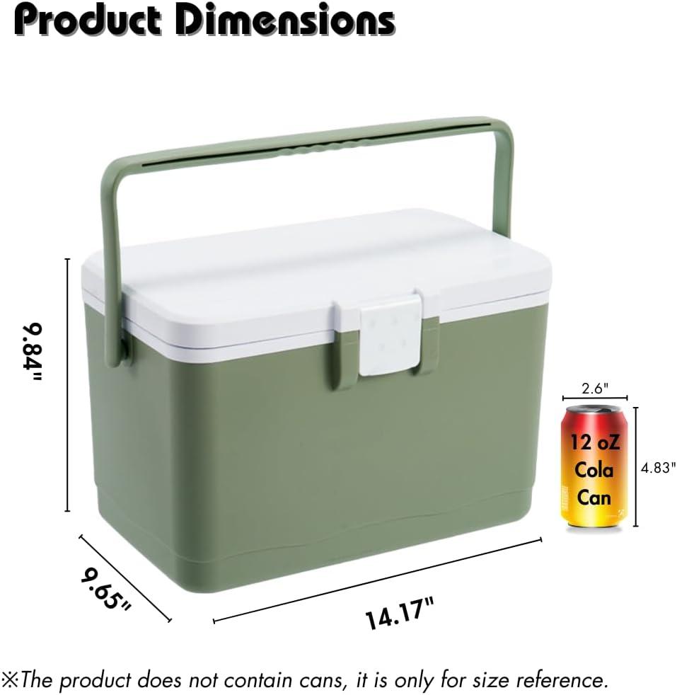 HiGropcore 5/8/13 Quart Camping Cooler - Hard Ice Retention Cooler Lunch Box - Portable Small Insulated Cooler(D6 - 8qt - Green)