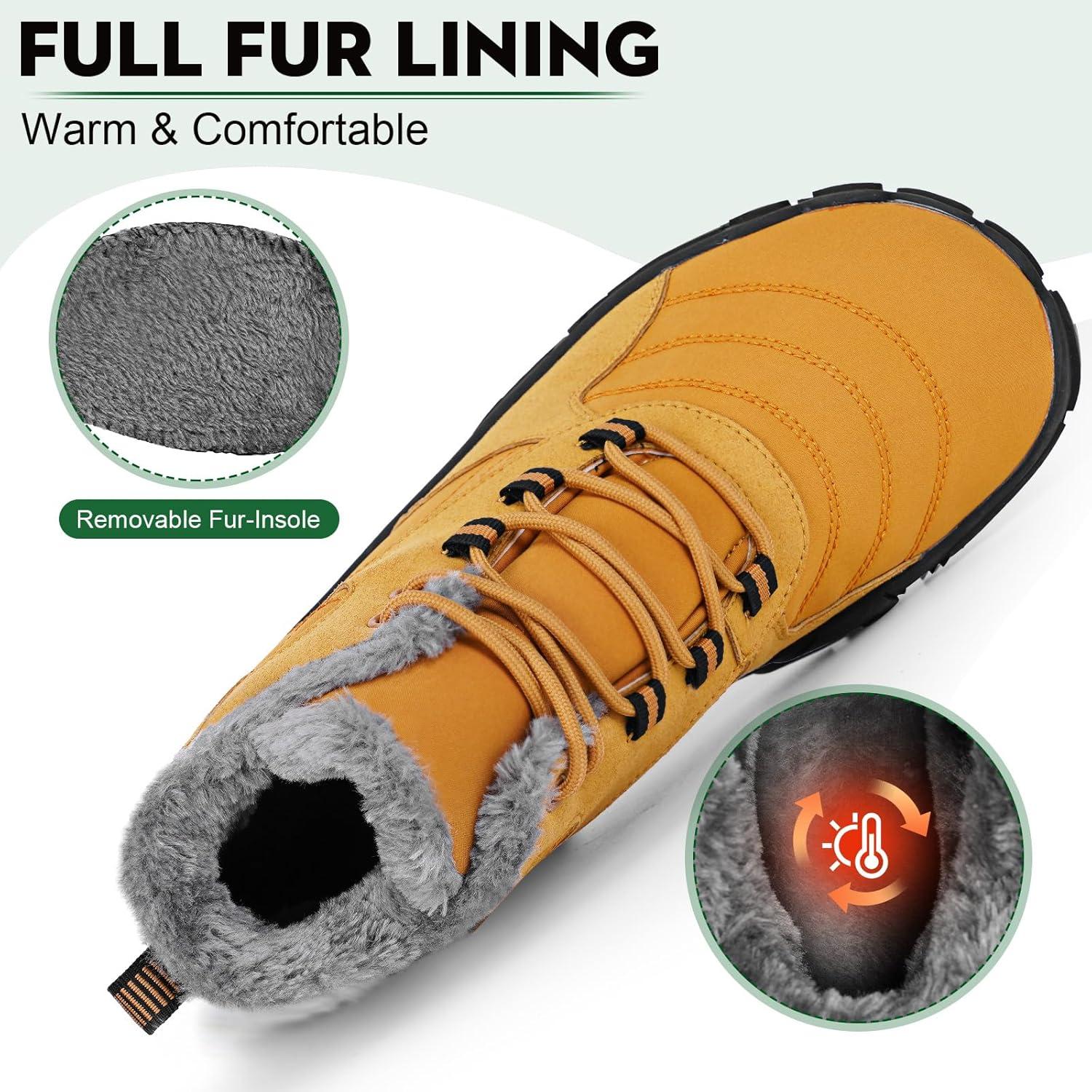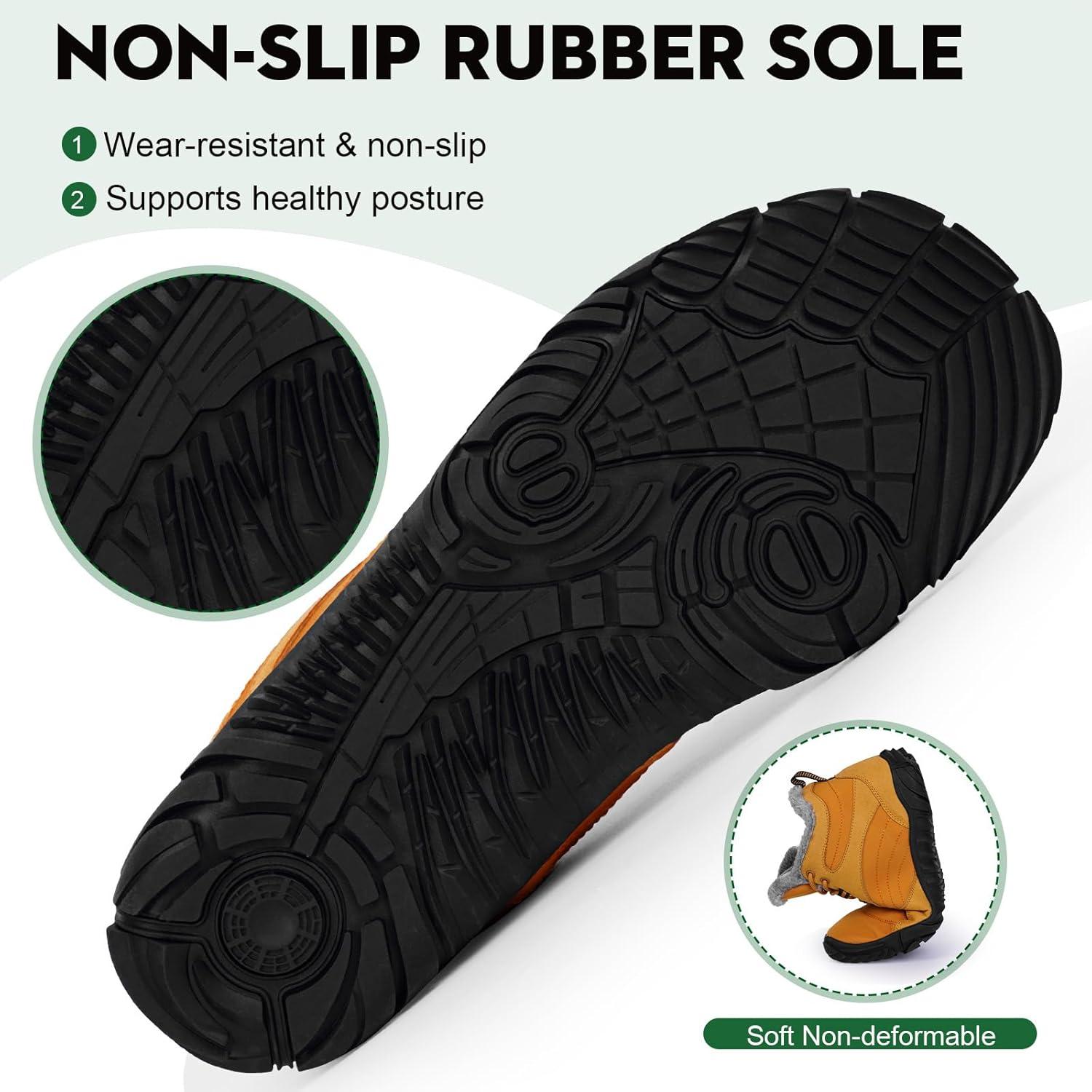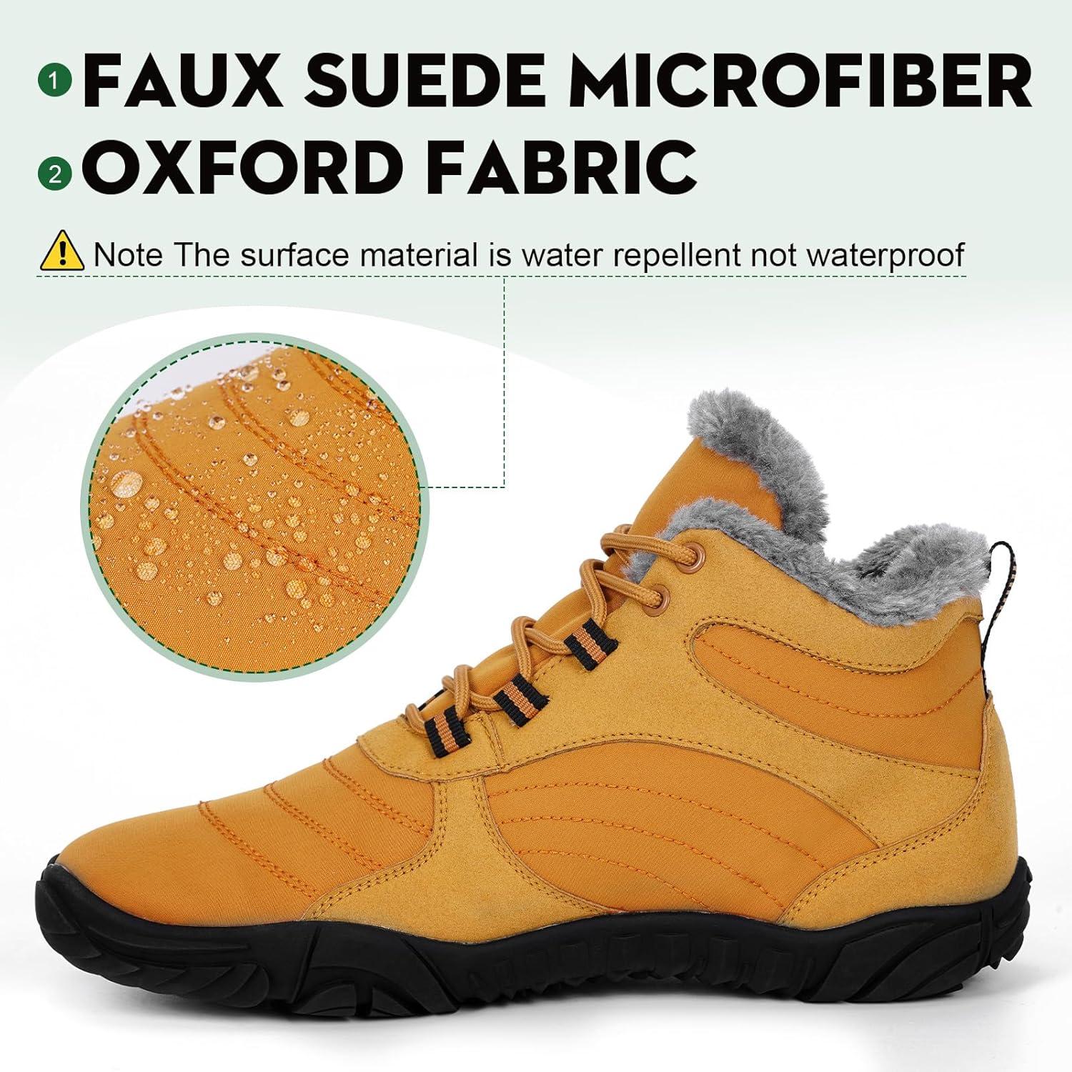 HiGropcore Barefoot Snow Boots for Women Men, Warm Fur Lined Water Repellent Winter Barefoot Shoes, Wide Toe Box Lightweight Outdoor Ankle Boots(A5 – Yellow)