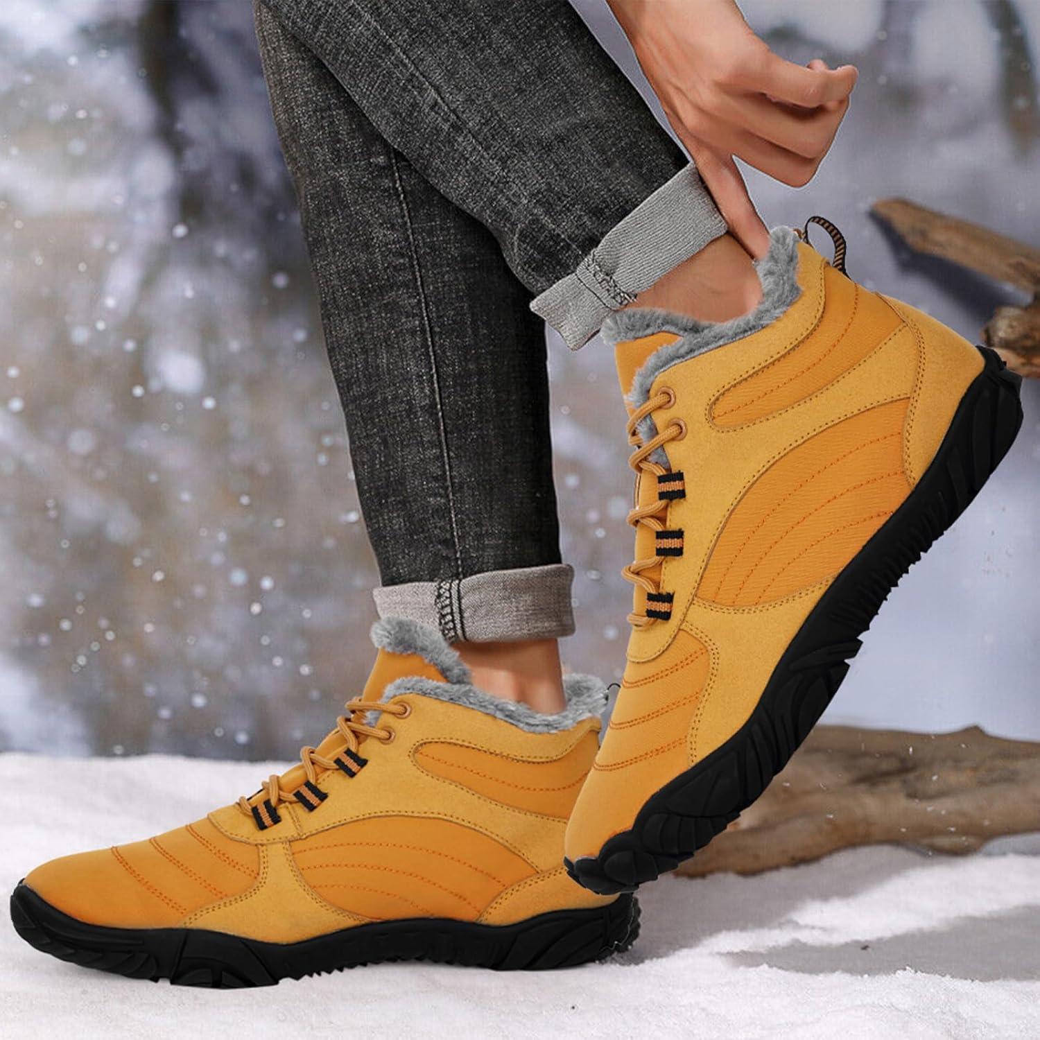 HiGropcore Barefoot Snow Boots for Women Men, Warm Fur Lined Water Repellent Winter Barefoot Shoes, Wide Toe Box Lightweight Outdoor Ankle Boots(A5 - Yellow)