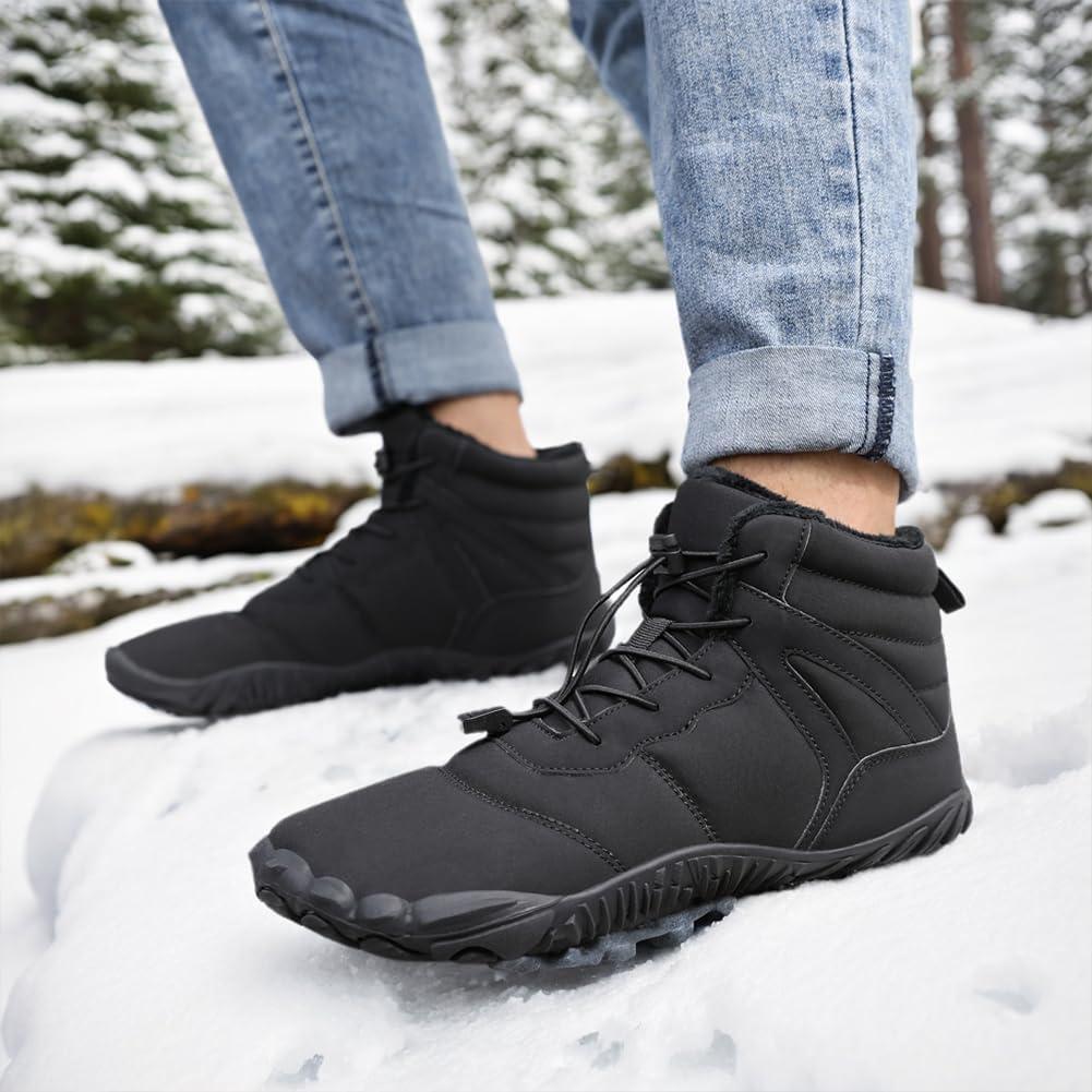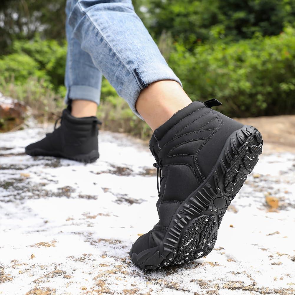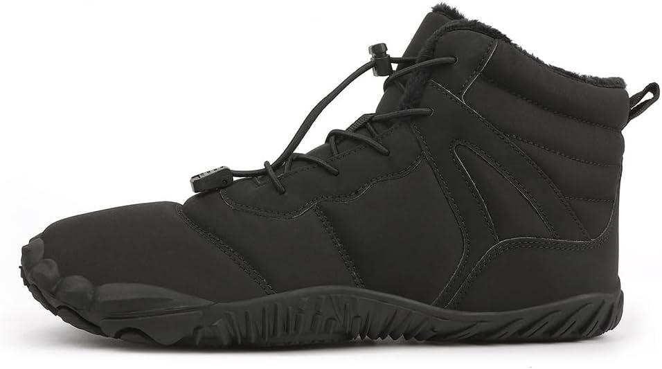 HiGropcore Barefoot Snow Boots for Women Men, Warm Fur Lined Water Repellent Winter Barefoot Shoes, Wide Toe Box Lightweight Outdoor Ankle Boots(E1 – Black)