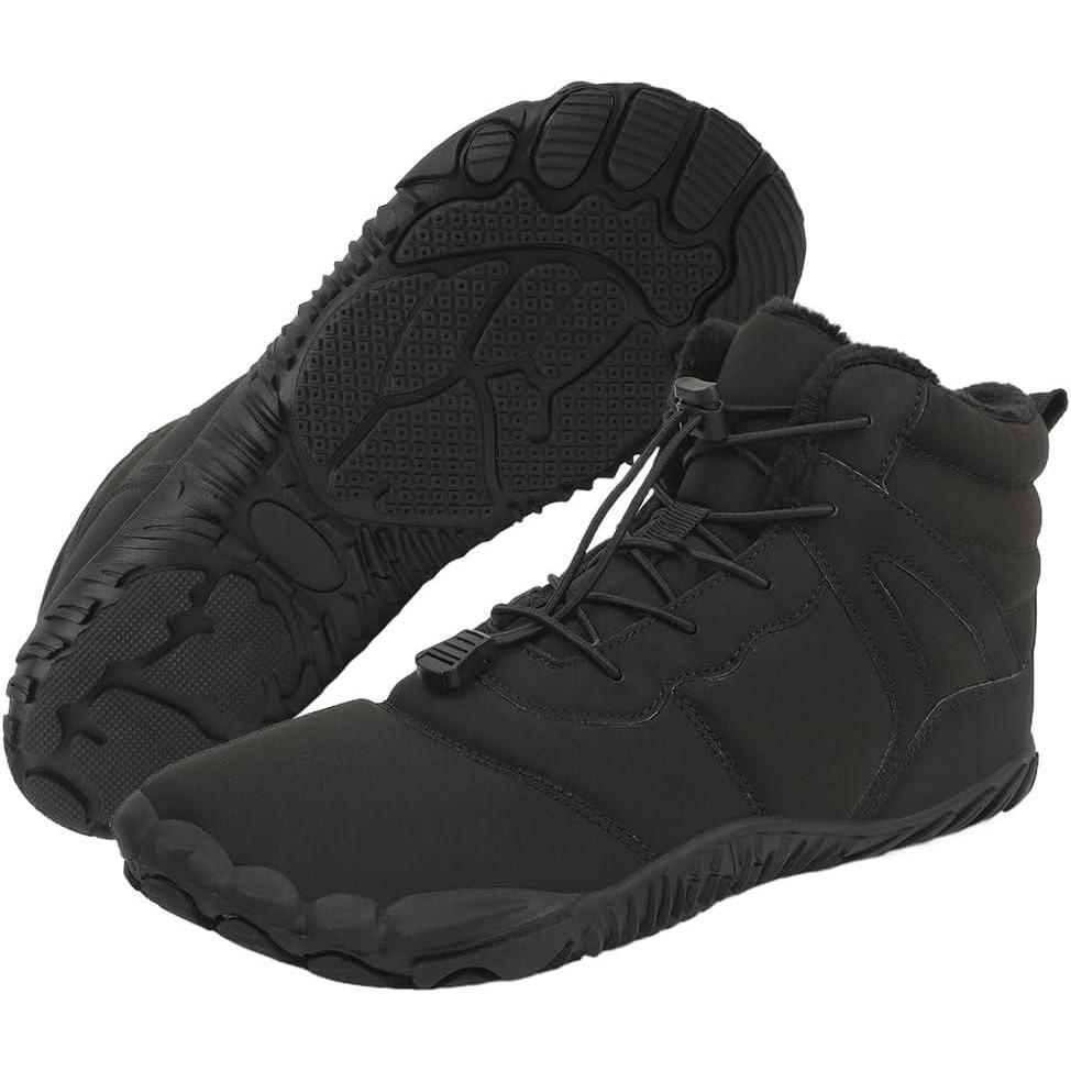 HiGropcore Barefoot Snow Boots for Women Men, Warm Fur Lined Water Repellent Winter Barefoot Shoes, Wide Toe Box Lightweight Outdoor Ankle Boots(E1 - Black)