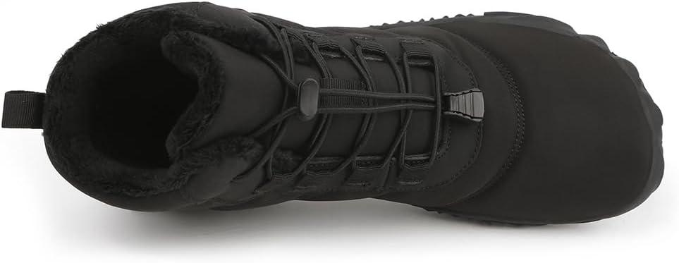 HiGropcore Barefoot Snow Boots for Women Men, Warm Fur Lined Water Repellent Winter Barefoot Shoes, Wide Toe Box Lightweight Outdoor Ankle Boots(F1 - Black)