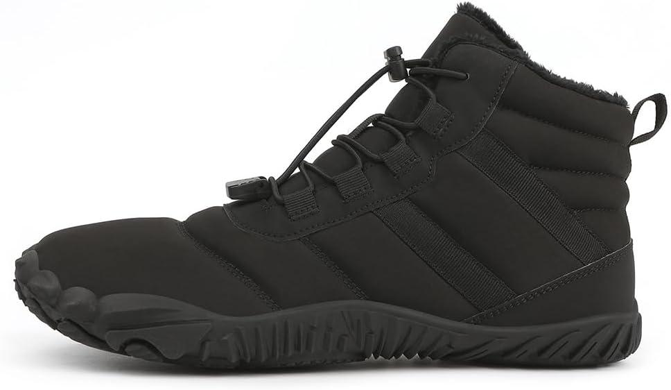 HiGropcore Barefoot Snow Boots for Women Men, Warm Fur Lined Water Repellent Winter Barefoot Shoes, Wide Toe Box Lightweight Outdoor Ankle Boots(F1 – Black)