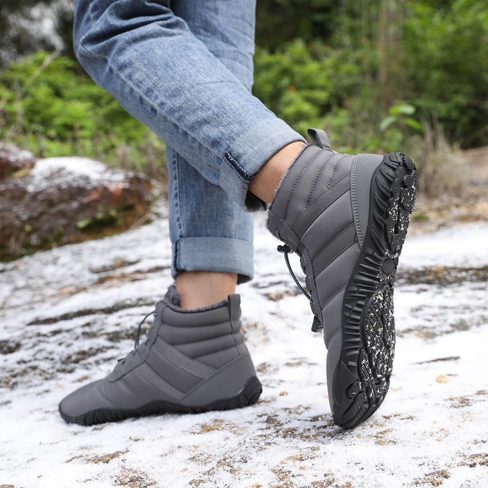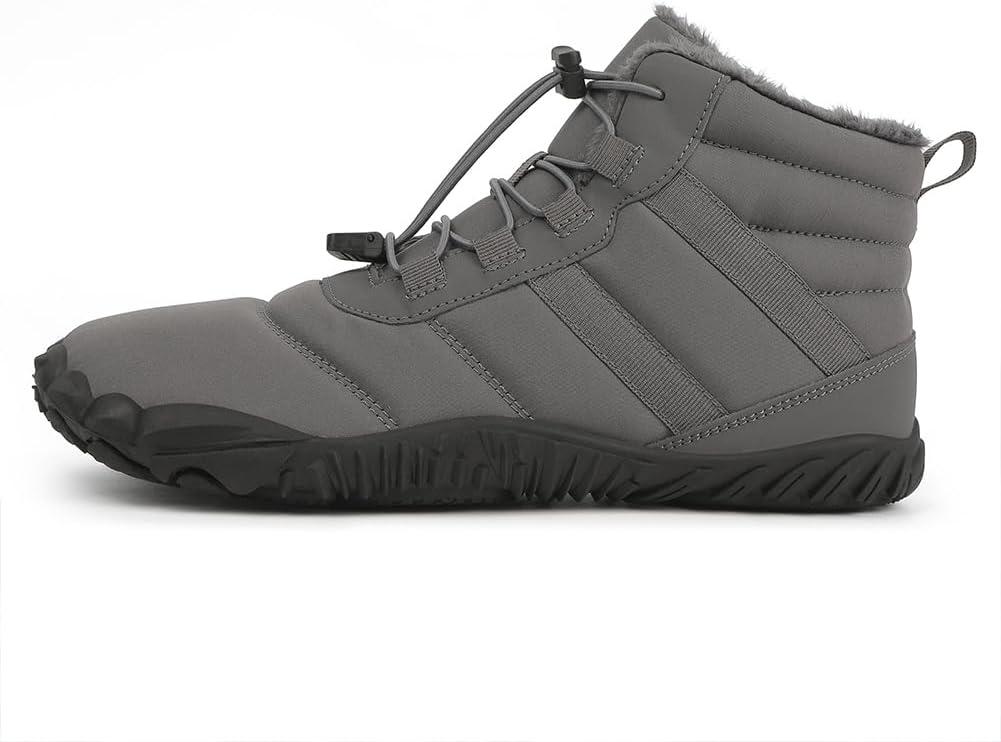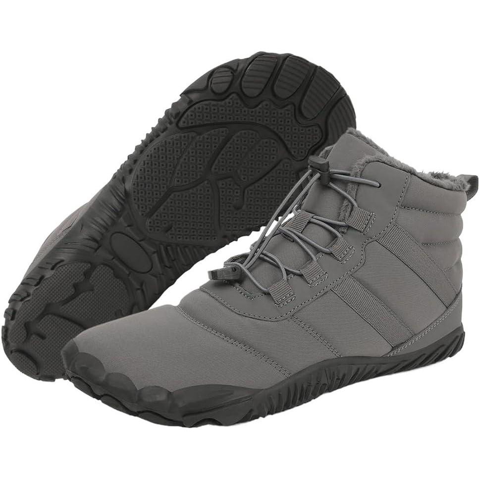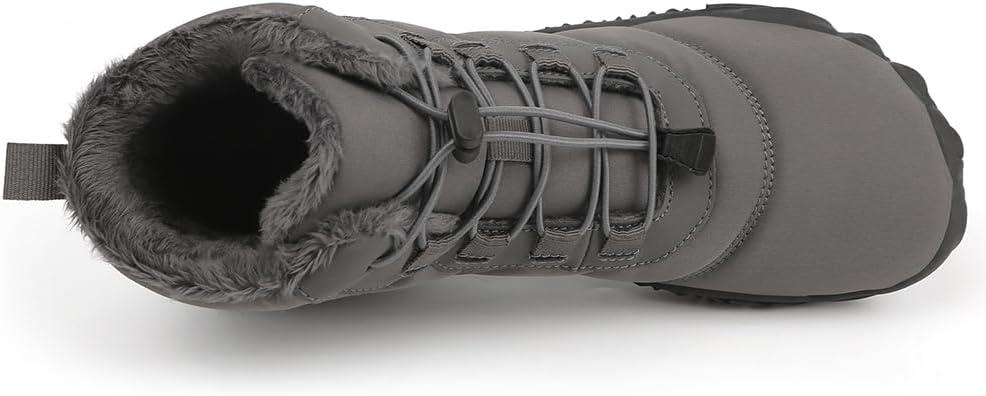 HiGropcore Barefoot Snow Boots for Women Men, Warm Fur Lined Water Repellent Winter Barefoot Shoes, Wide Toe Box Lightweight Outdoor Ankle Boots(F2 – Grey)