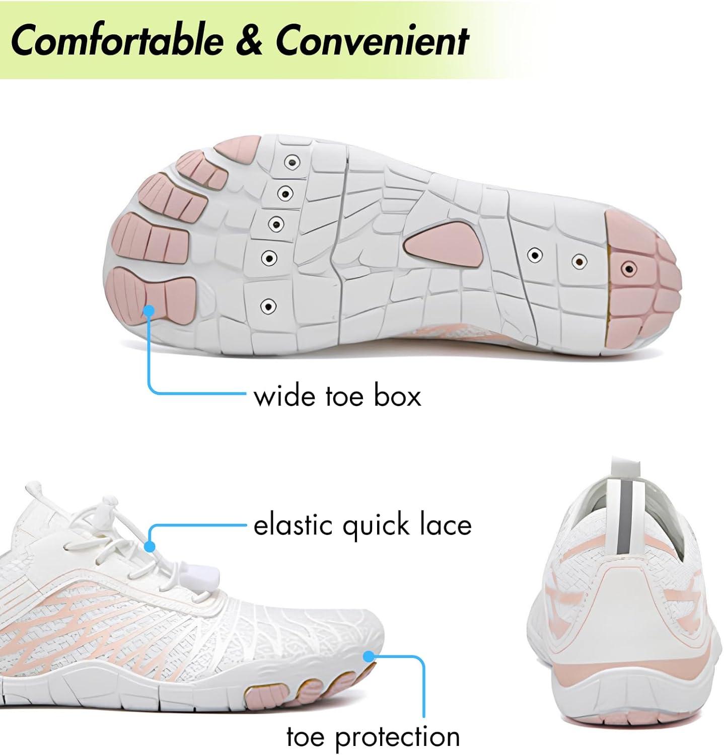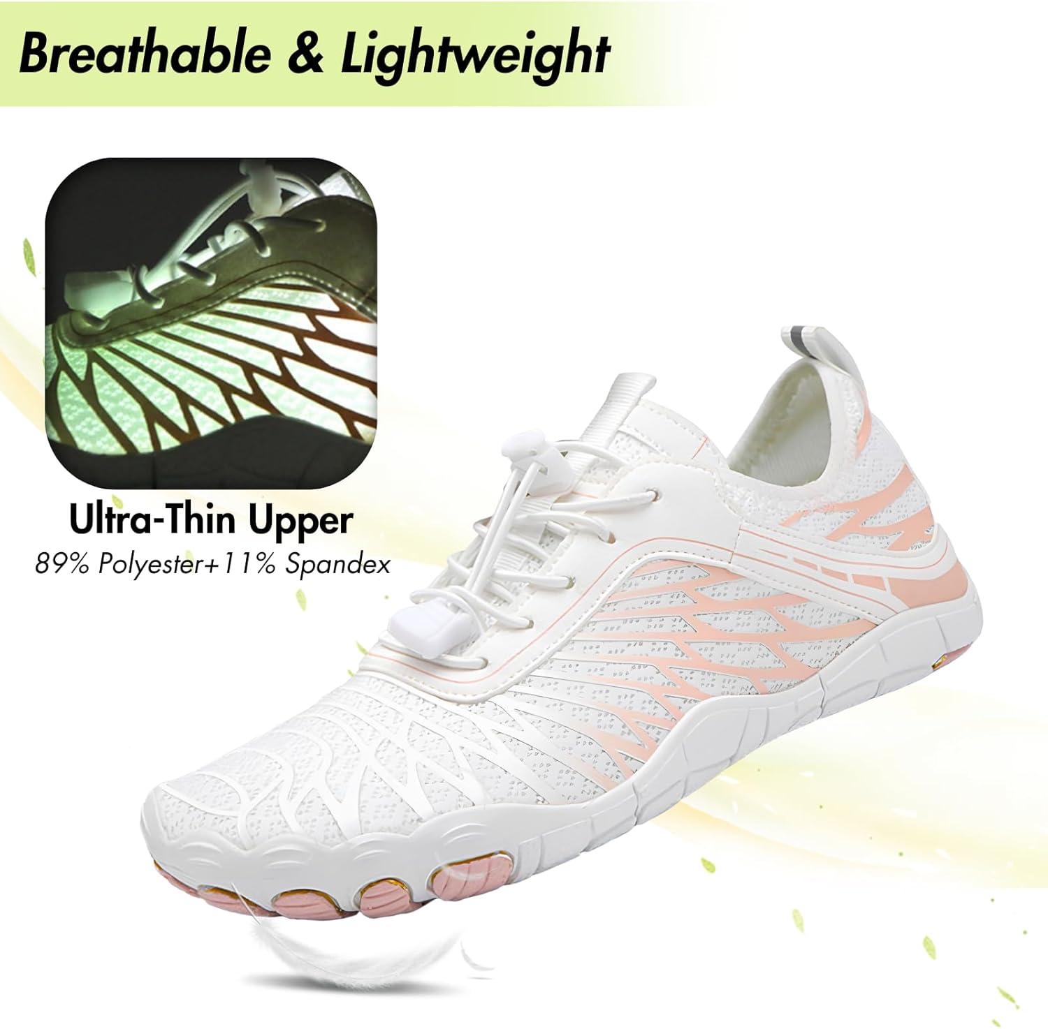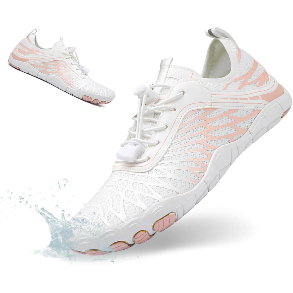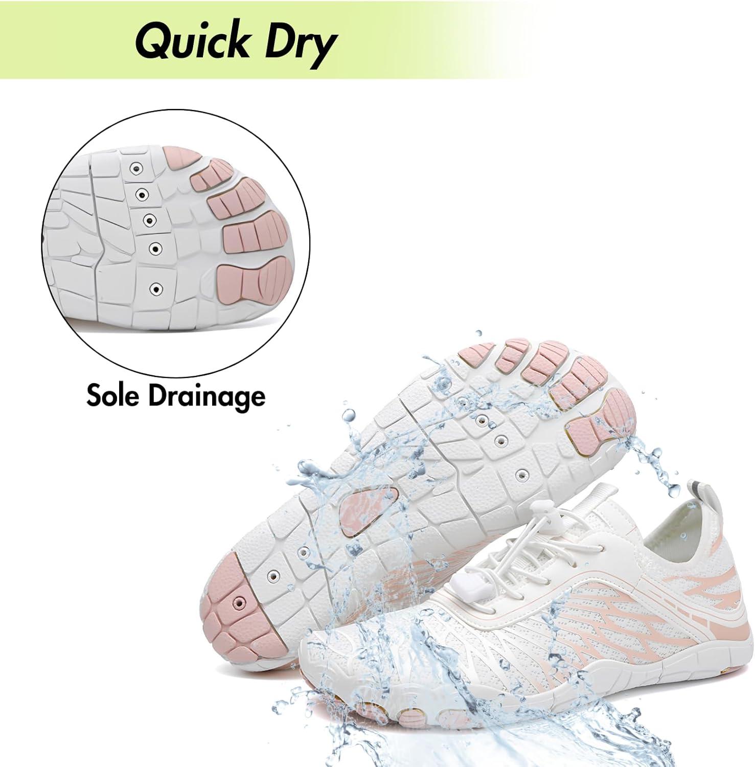 HiGropcore Water Shoes Men Women, Barefoot Wide Toe Box Beach Shoes, Quick Dry Breathable Swim Aqua Socks with Drainage(Tg02a. White)